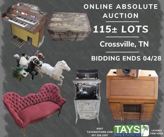 ONLINE ABSOLUTE AUCTION: FURNITURE - APPLIANCES - TOOLS - HOME DEOCR 367 Webb Ave Crossville, TN Begins: April 21, 2026 at 10:00AM C.T. Ends: April 28, 2026 Starting at 10:00AM C.T.
