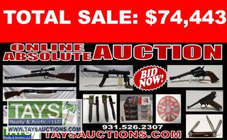 ONLINE ABSOLUTE AUCTION: FIREARMS - SPORTING GOODS - AMMUNITION 620 Maxwell St. Cookeville, TN Begins: January 12, 2021 at 10:00AM C.T. Ends: January 26, 2021 Starting at 10:00AM C.T.