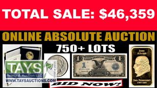 ONLINE ABSOLUTE AUCTION: COINS - COLLECTIBLES - GOLD BULLION 620 Maxwell St. Cookeville, TN Begins: November 24, 2020 at 10:00AM C.T. Ends: December 08, 2020 Starting at 10:00AM C.T.