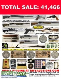 ABSOLUTE ONLINE AUCTION: FIREARMS - COINS - COLLECTIBLES & MORE 620 Maxwell St. Cookeville, TN Begins: February 18, 2020 at 10:00AM C.T. Ends: March 03, 2020 Starting at 10:00AM C.T.