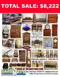 ABSOLUTE ONLINE AUCTION: FURNITURE - ANTIQUES - COLLECTIBLES & MORE 620 Maxwell St. Cookeville, TN Begins: February 25, 2020 at 10:00AM C.T. Ends: March 10, 2020 Starting at 10:00AM C.T.