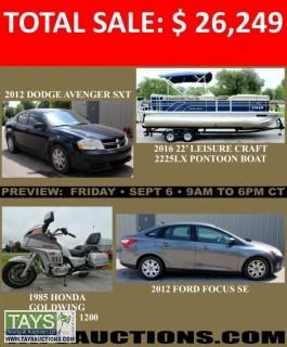 ABSOLUTE ONLINE AUCTION: VEHICLES - BOAT & MOTORCYCLE 620 Maxwell St Cookeville, TN Begins: August 27, 2019 at 10:00AM C.T. Ends: September 10, 2019 Starting at 10:00AM C.T.