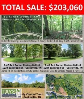 The bid has been raised on Tracts 1 through 12 of Old Cookeville Rd, Old Kentucky Rd, and Ray Cemetery. The bid has been raised on Tracts 3,5,6,7,8, 11, 12 and 13 on Franks Ferry Road. Auction staff will be at the White County Courthouse on November 15, 2018 at 11:00 AM for the final resale for any tract that has been raised.