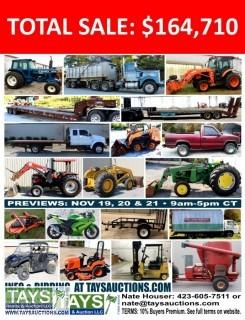 ABSOLUTE ONLINE AUCTION: TRACTORS - TRAILERS - UTVS - IMPLEMENTS 620 Maxwell St. Cookeville, TN Begins: November 13, 2018 at 10:00AM C.T. Ends: November 27, 2018 Starting at 10:00 AM C.T.
