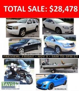 ABSOLUTE ONLINE AUCTION: 5 VEHICLES - MOTORCYCLE - BOAT 620 Maxwell St. Cookeville, TN Begins: October 30, 2018 at 10:00am C.T. Ends: November 13, 2018 Starting at 10:00AM C.T.
