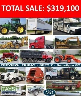 ABSOLUTE ONLINE AUCTION: TRACTORS - INDUSTRIAL EQUIPMENT - IMPLEMENTS 620 Maxwell St. Cookeville, TN Begins: August 28, 2018 at 10:00AM C.T. Ends: September 11, 2018 Starting at 10:00AM C.T. More Info Coming Soon