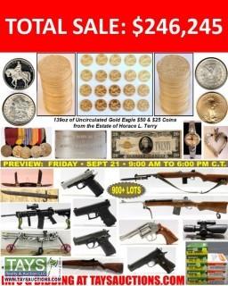 ABSOLUTE ONLINE AUCTION: FIREARMS - COINS - KNIVES - 130± OUNCES OF GOLD 620 Maxwell St. Cookeville, TN Begins: September 11, 2018 at 10:00AM C.T. Ends: September 25, 2018 Starting at 10:00AM C.T.